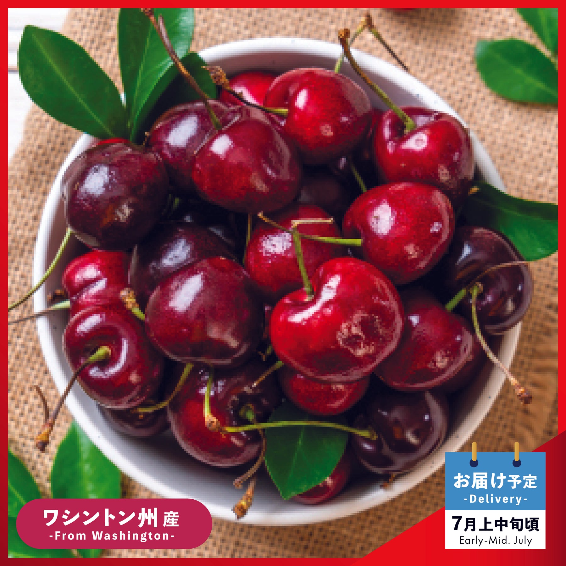 アメリカンチェリーを代表する品種で、パチッとはじける歯ごたえと濃厚な甘さが爆発的な人気を誇る秘訣です。果皮は濃い赤でまるで宝石のよう! (大粒チェリーは、全商品25mm以上です。)