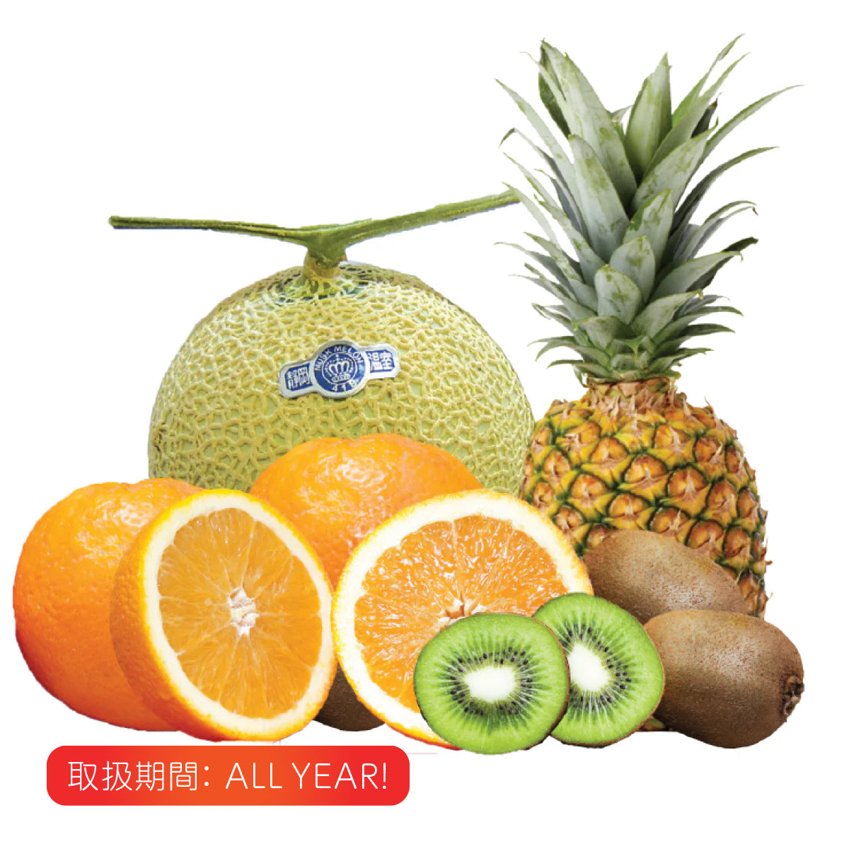 Enjoy musk melon from Shizuoka, Japan with a medley of fruits.